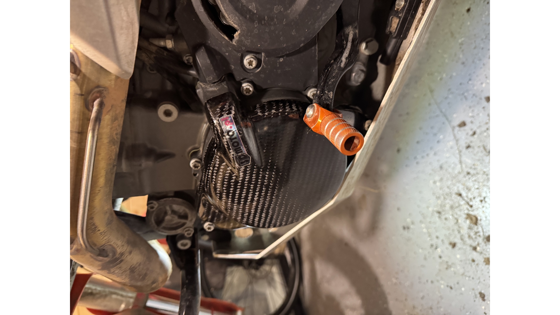 -now both carbon covers are fixed to the bike with a pair of the clutch/ignition covers fixing bolts. No glue needed anymore!