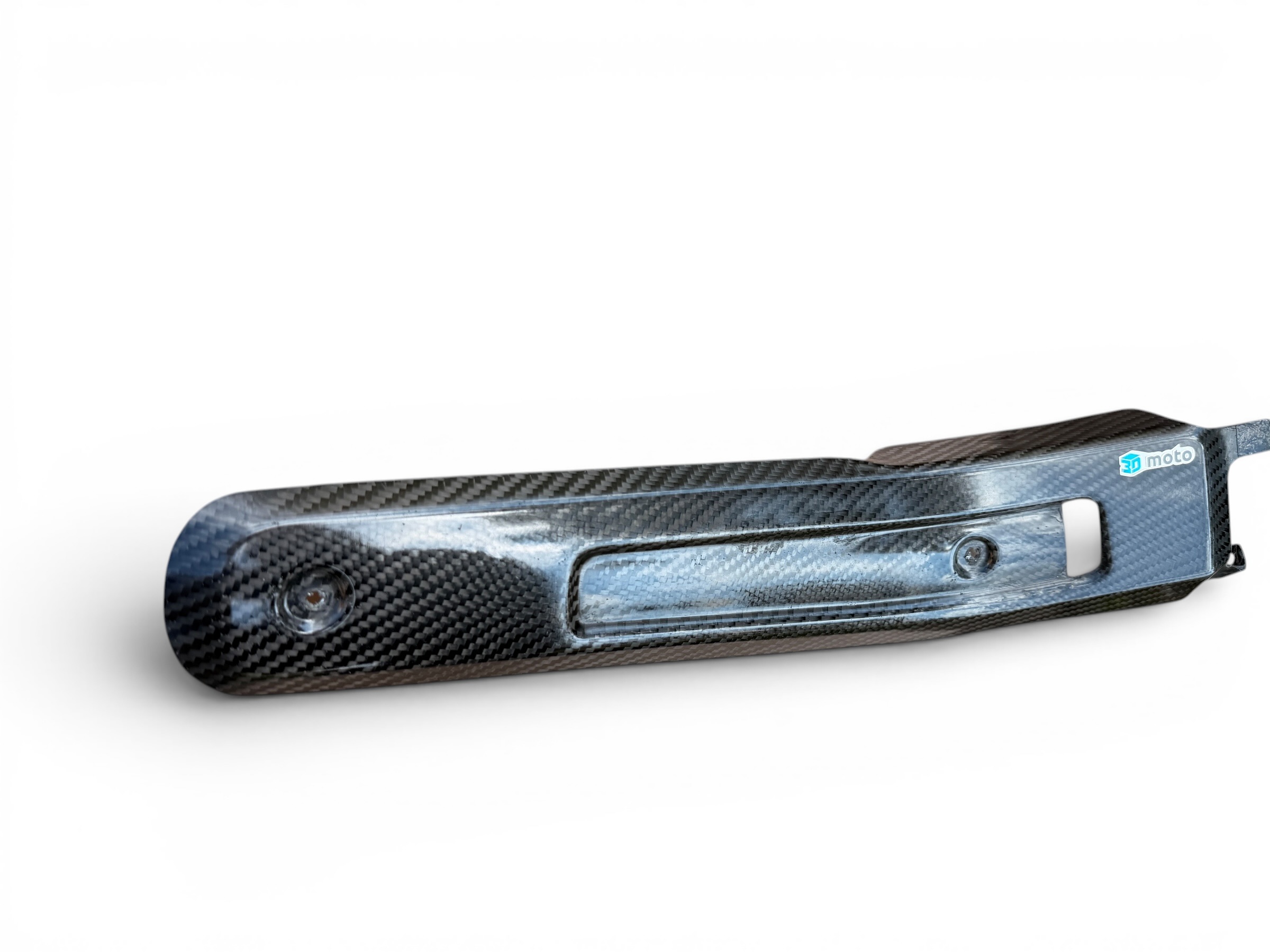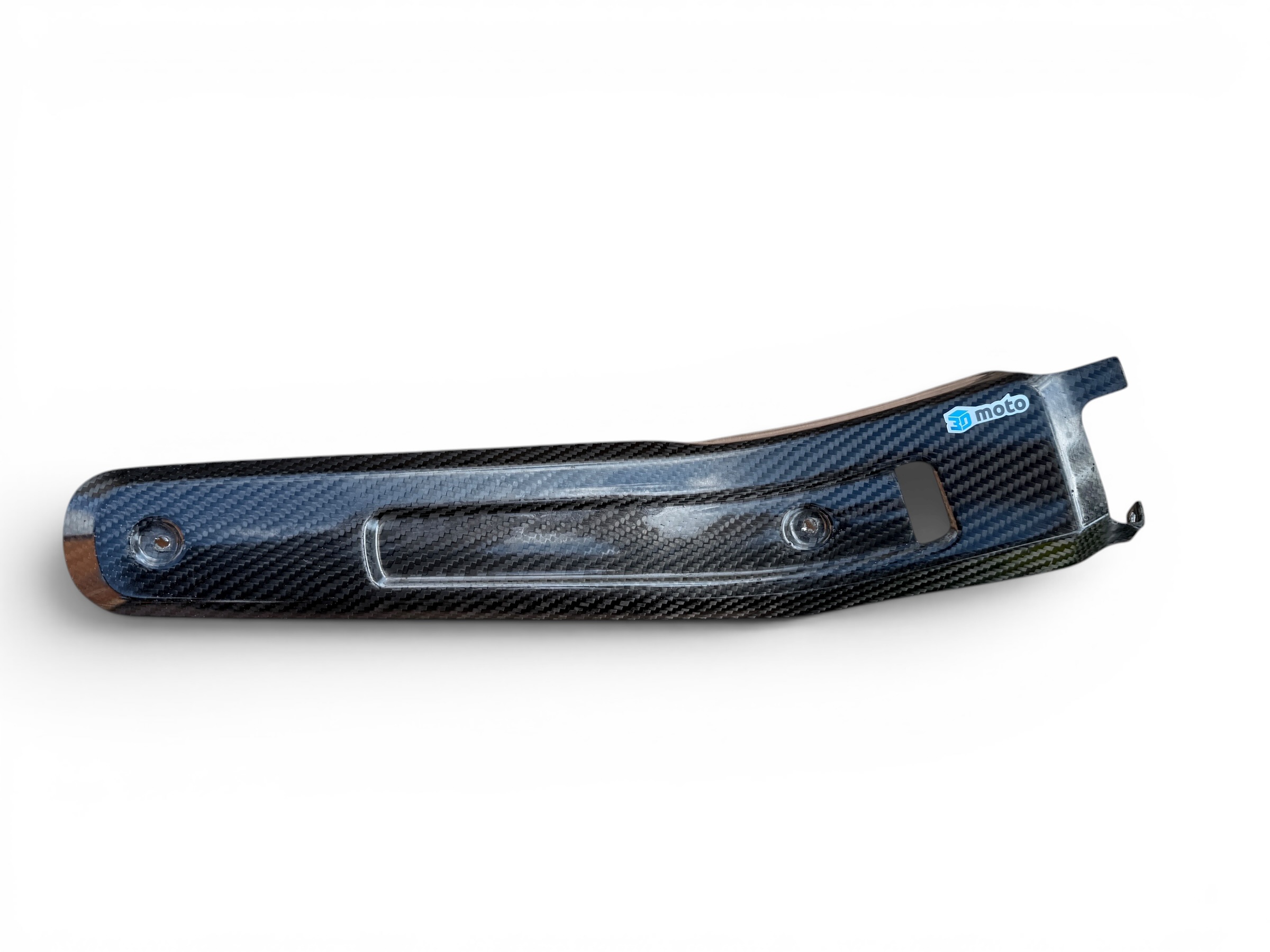 Carbon Fiber Exhaust Heat Shield for 2026+ Husqvarna 701 as a replacement of an original, metal heat protector.