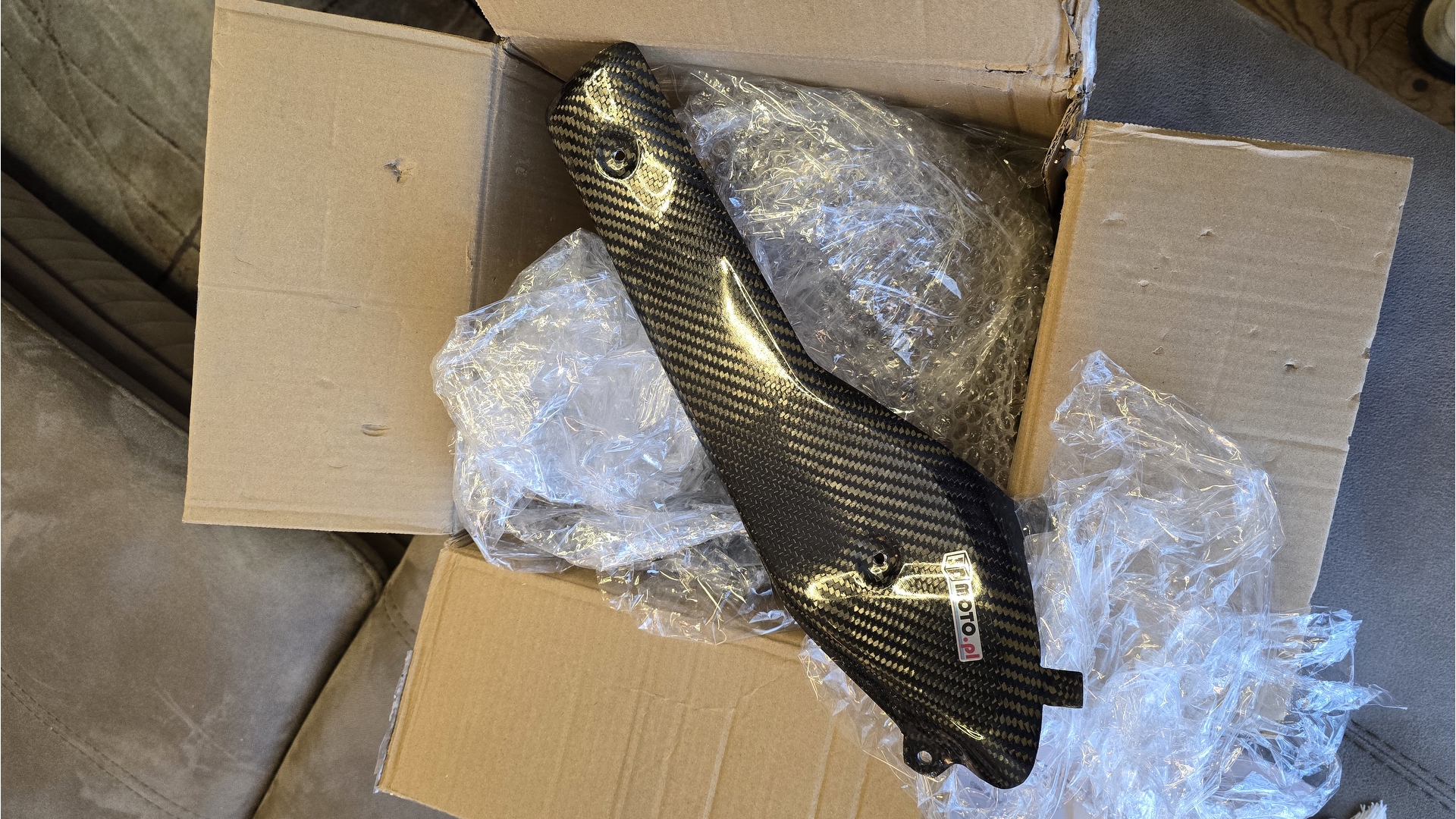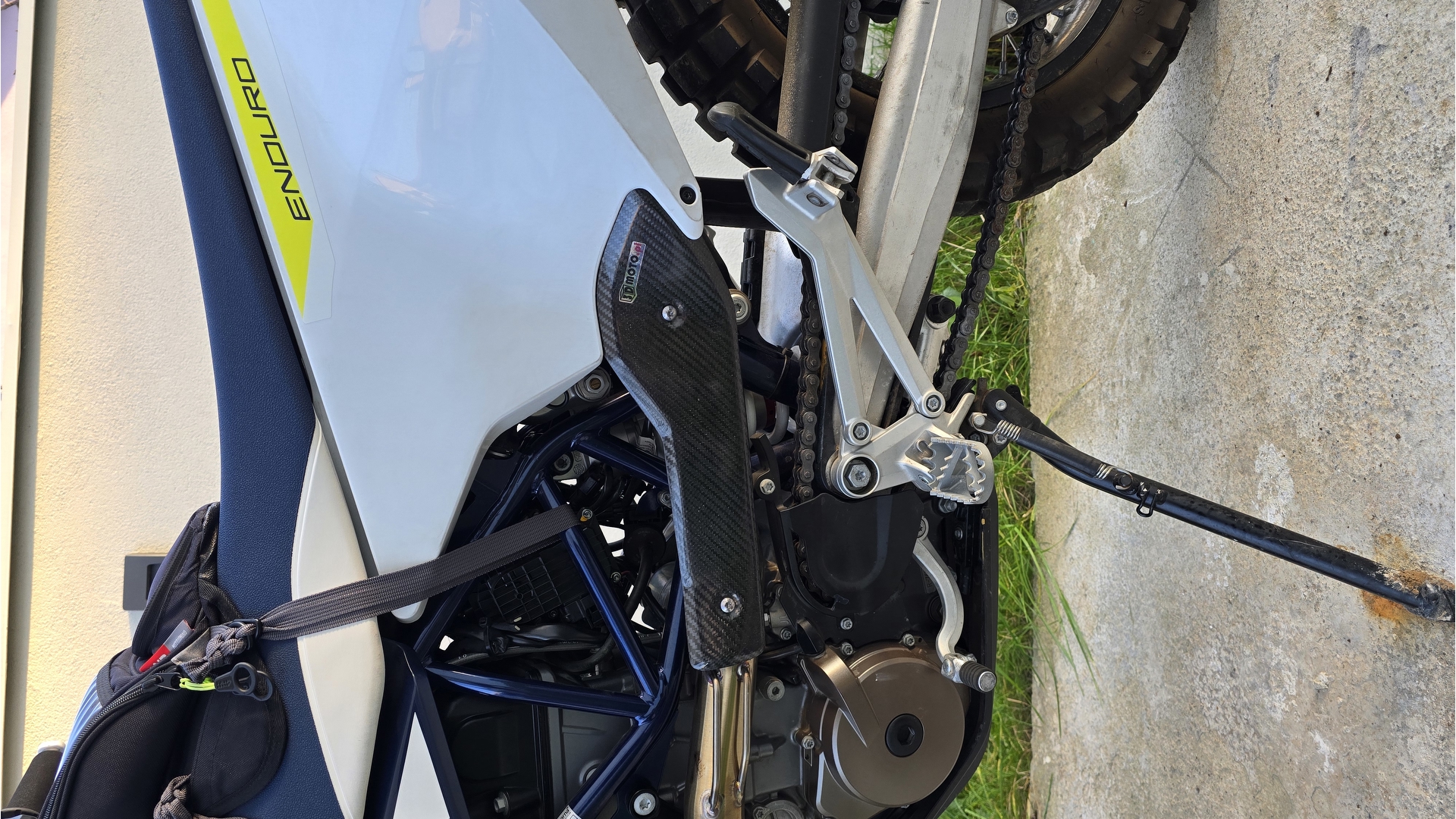 Carbon Fiber Exhaust Heat Shield for Husqvarna 701 Enduro/SMC (all production years) as a replacement of an original, metal protector