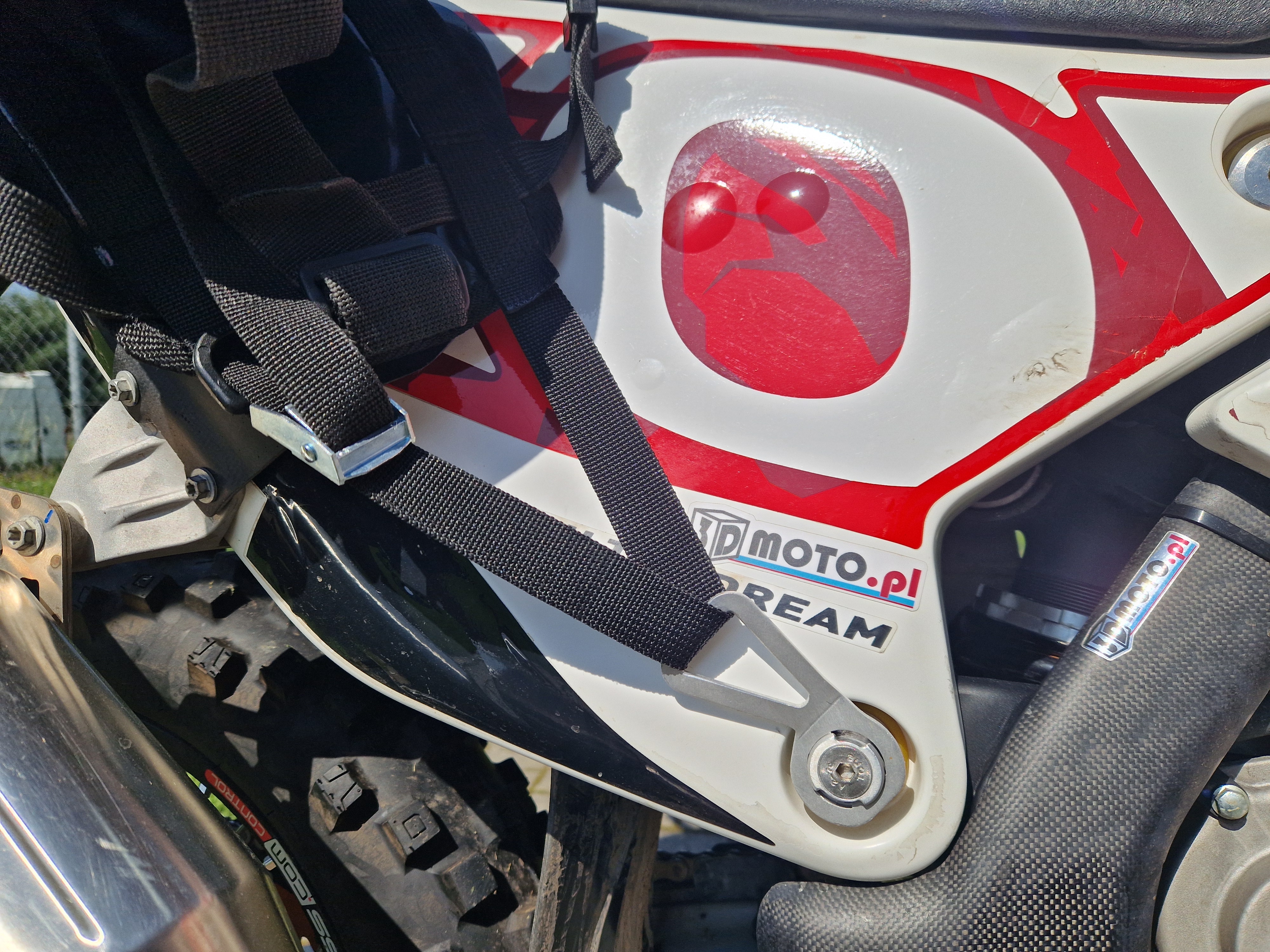 Engineered for adventure, the PivotLock Mounts are a premium set of detachable lower strap mounts designed specifically for the Kove 450 Rally. Built from anodized aluminum and secured with high-grade steel hardware, these mounts offer a fast, secure, and tool-free way to attach soft luggage — without ever needing to undo lower straps.